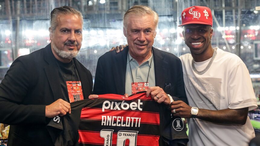 Jogo do Flamengo contou com presença de personalidades importantes do futebol, como Vini Jr. e Ancelotti