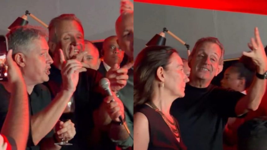 Em comemoração na Gávea, Luiz Eduardo Baptista cantou pagode provocando o Palmeiras